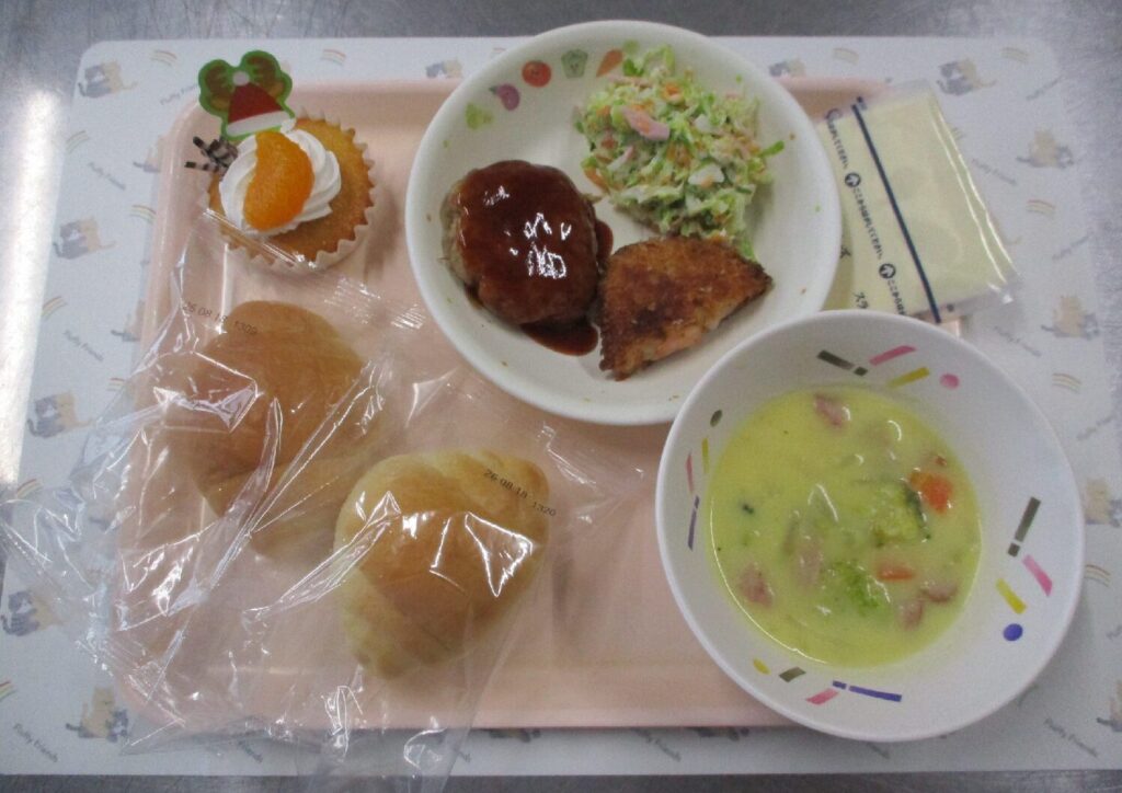 🎄🎅🎄クリスマス会🎄🎅🎄2025-12-24 お知らせ今日、クリスマス会がありました。様子はこちら⇒クリスマス会メニューセレクトバーガー🍔、コールスローサラダ、クリームシチュー、ケーキ🧁でした。おいしかったね😊😊😊