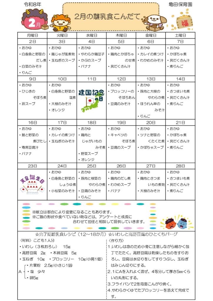 🥄2月献立表🥄